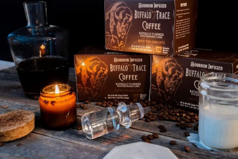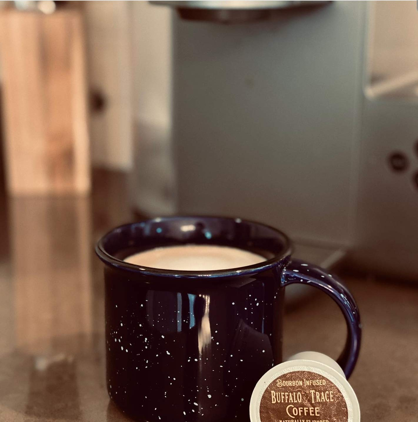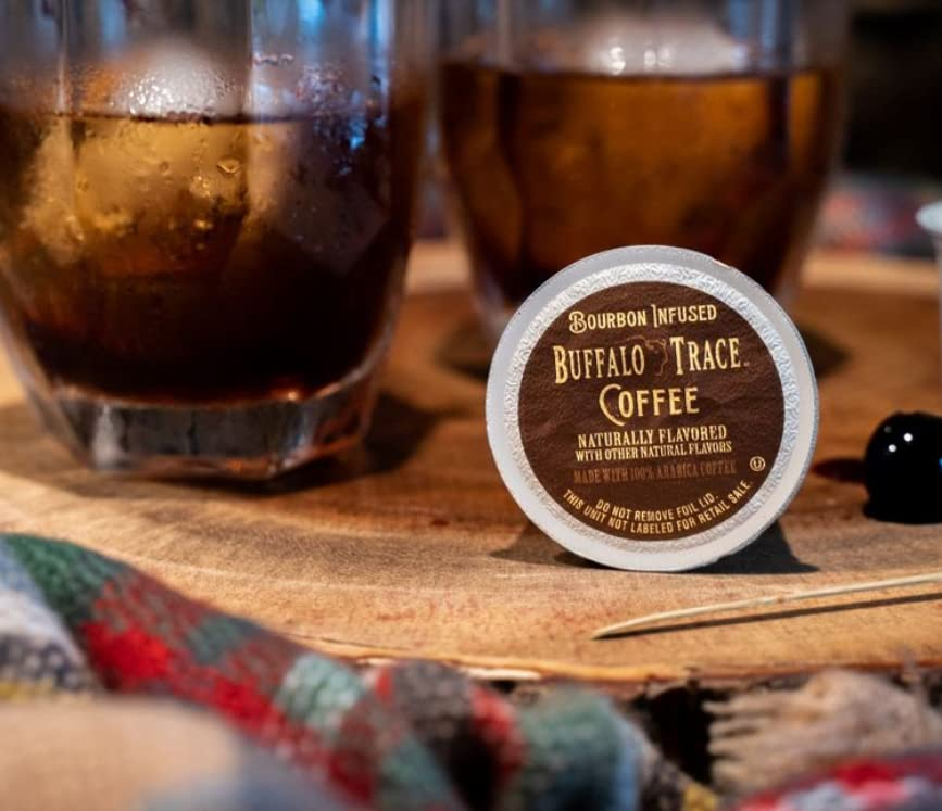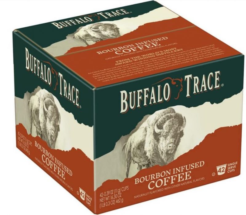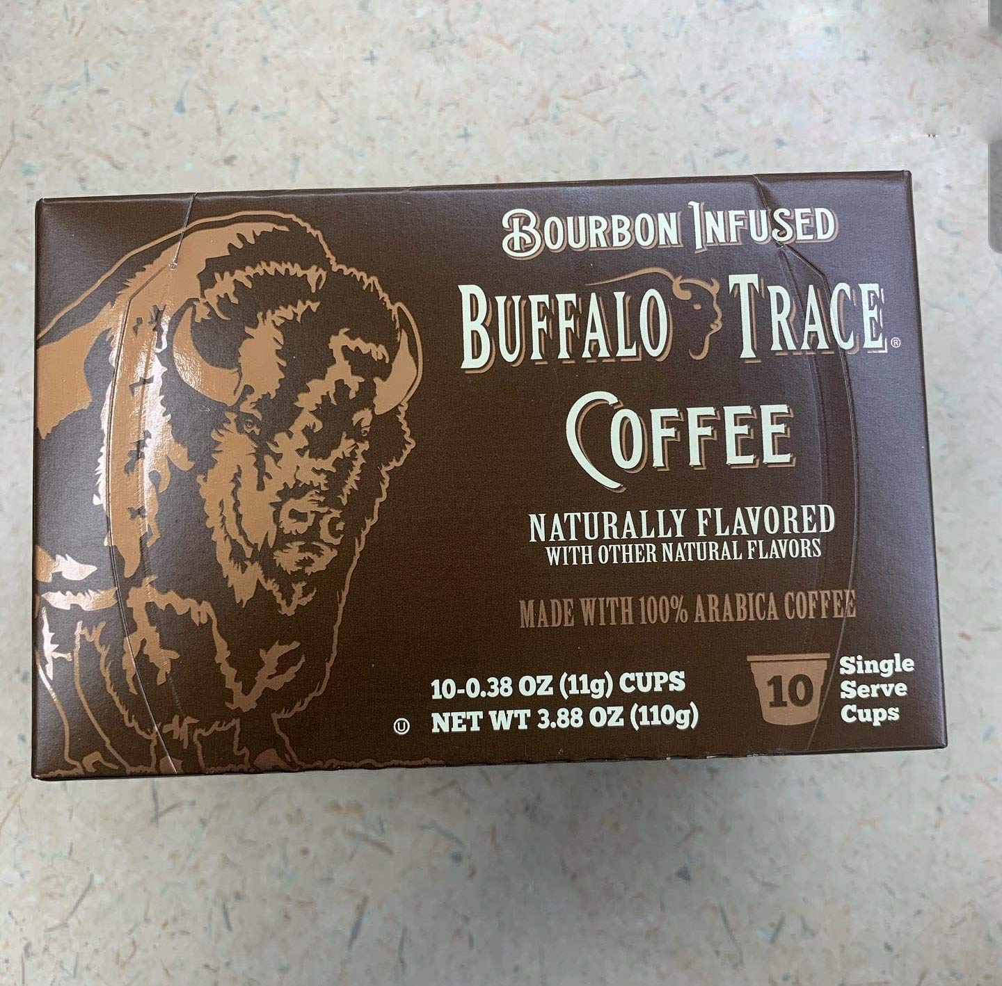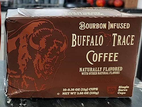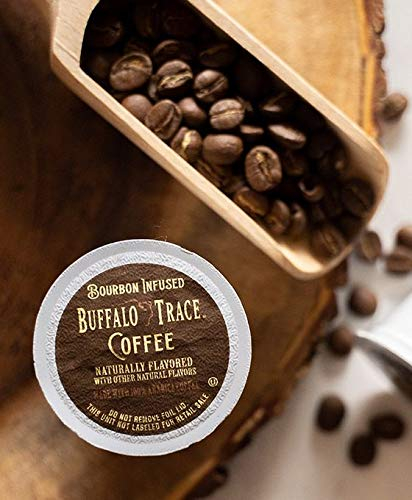 Start your day with the distinct flavor and aroma of Buffalo Trace Bourbon Flavored Coffee. This delicious medium roast coffee delivers a strong taste with hints of Buffalo Trace Kentucky Straight Bourbon Whiskey. 100% Arabica coffee for unparalleled quality. Pair with Buffalo Trace Distillery Bourbon Cream for an incomparable after dinner drink! 10 single serve pods per box. Kosher-certified Fat, dairy, lactose, gluten, nut, peanut, wheat, and soy-free Medium roast Naturally flavored 100% Arabica coffee Compatible with Keurig coffee brewers and other single serve coffee makers Serving size: 1 Pod 42-count Made in USA of U.S. and imported materials