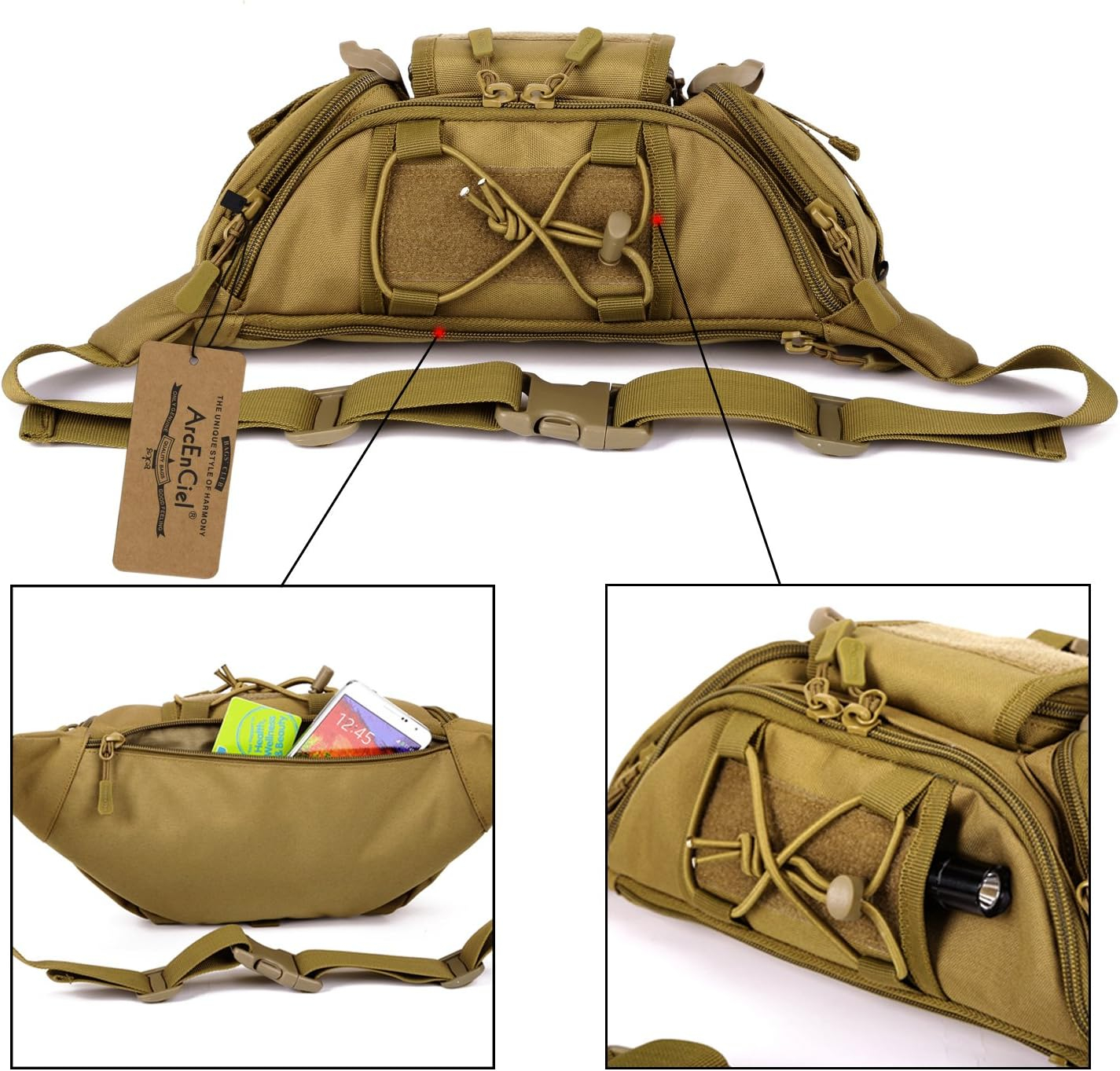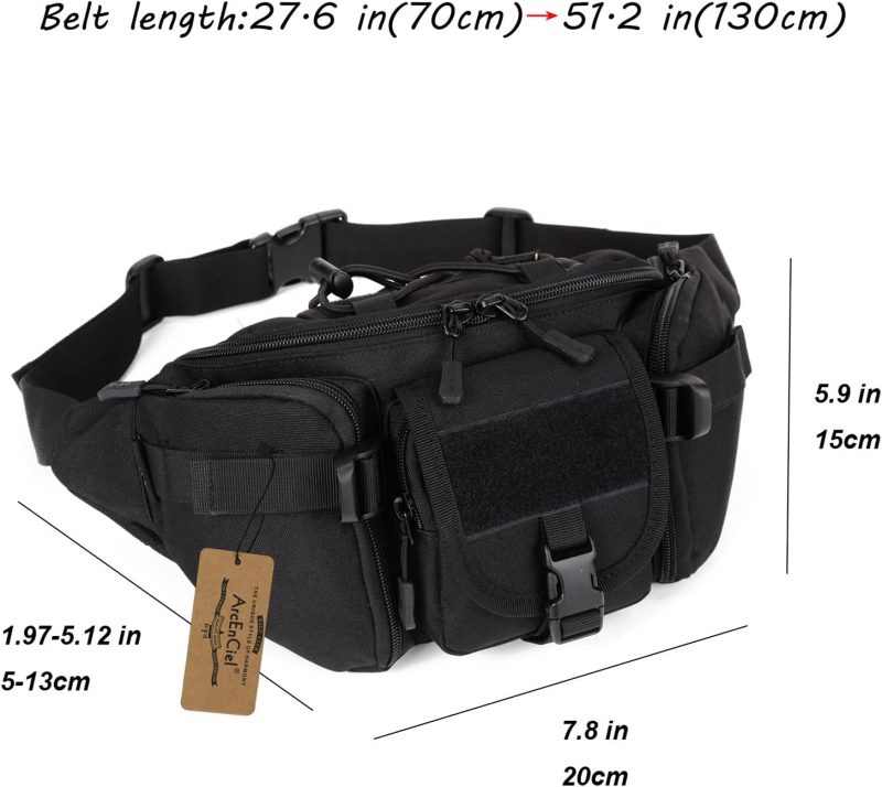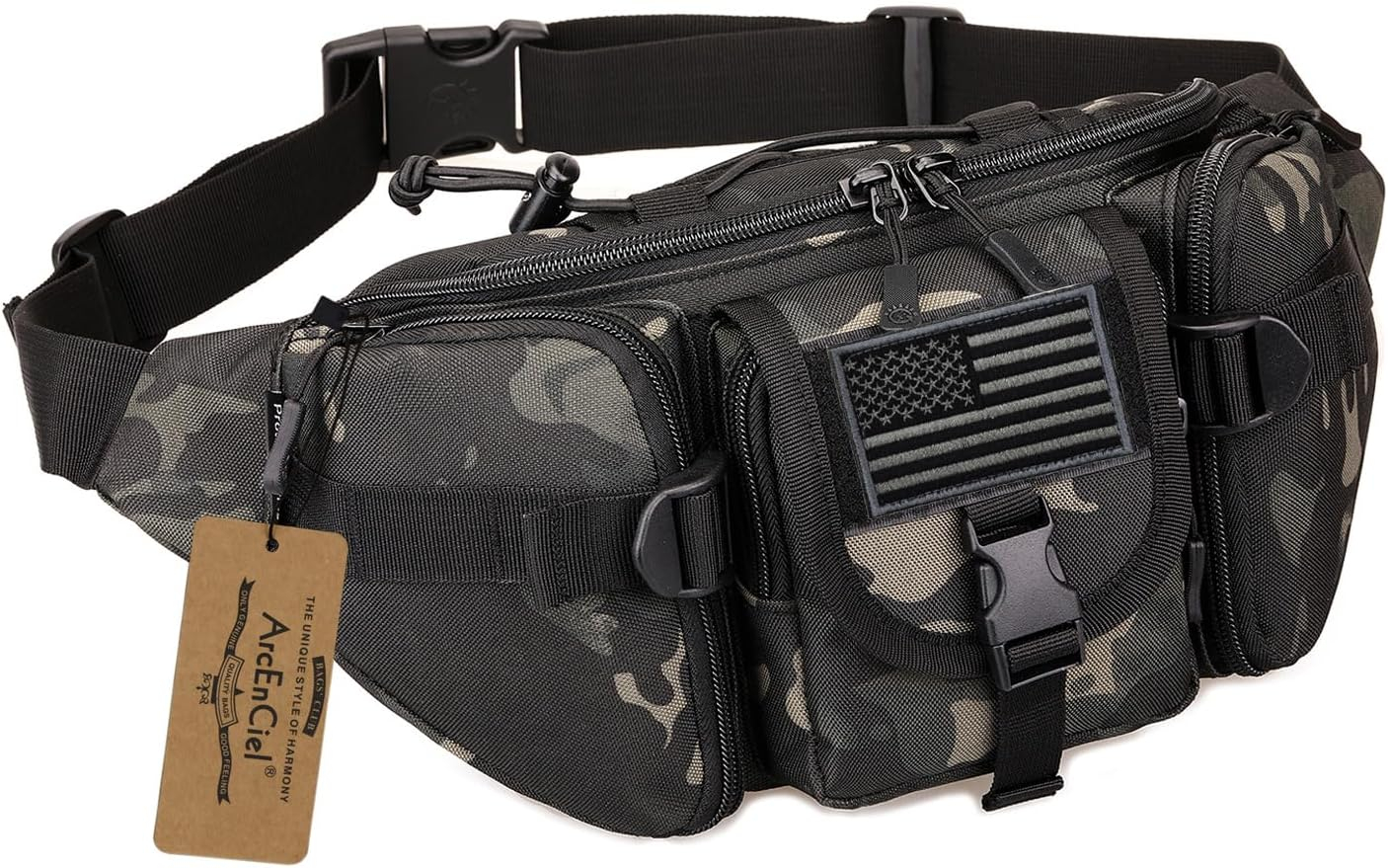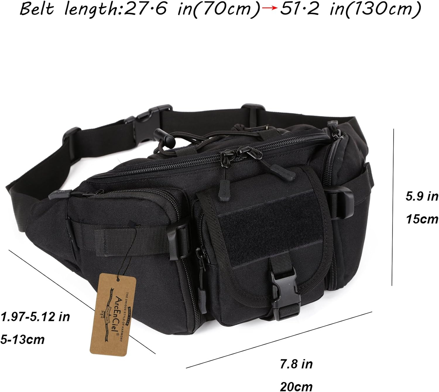ArcEnCiel Tactical Fanny Pack for Men Waist Bag Hip Belt Outdoor Hiking Fishing Bumbag with Patch
