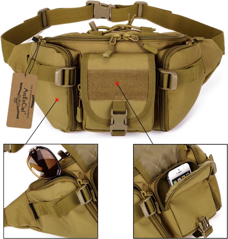 10 reviews for ArcEnCiel Tactical Fanny Pack for Men Waist Bag Hip Belt Outdoor Hiking Fishing Bumbag with Patch