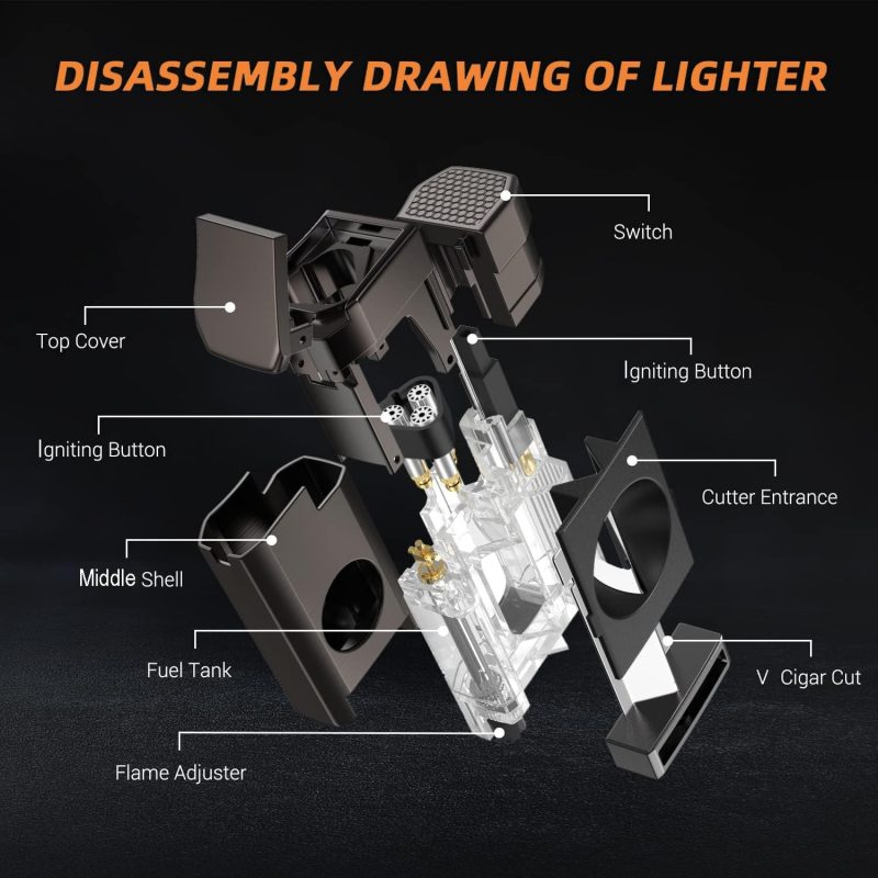 Three strong burners provide triple powerful and windproof flames, perfect for ignite cigar. The flame regulator on the bottom to adjust flame height.